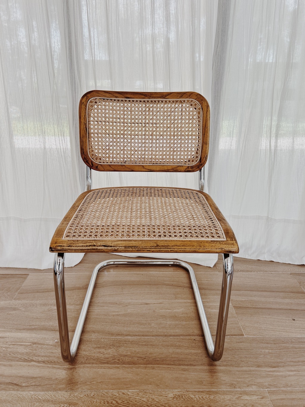 Madera de olmo con asiento y respaldo de esterilla francesa.